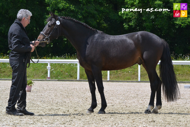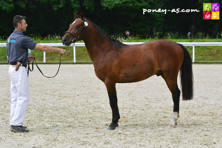Ils n’étaient au final que deux mâles à s’être présentés devant les juges sur les quatre initialement engagés. La victoire est revenue à Fosbury d’Eskame, inscrit au stud-book Welsh part-bred. Né à la EARL Les Ecuries d’Eskame (85), il est le fruit du mariage entre le jeune Selle Français Balthazar de Fougnard (Diamant de Semilly x Quidam de Revel) et la Welsh B Moelview Indiana (Eyarth Tomahawk) née en Grande-Bretagne, mère d’un autre poulain issu également d’un Selle Français, Lully Rocio, présenté dans la classe des mâles Pfs de 2 ans. Fosbury a obtenu 75,17/100 au modèle et 27,33/40 aux allures.