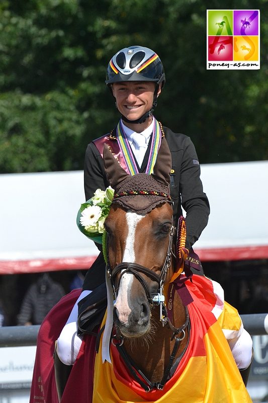Avec sa chic et toute bonne Camissa Nera, Calvin s’est emparé de la 4e place derrière Linn Sophie Mauchert (Prins Maestro) et Theresa Schulze Wartenhorst (Pascal S.W.). Le quatuor de tête est complété par la double championne d’Europe en titre, Anna Lena Schaaf aux rênes de sa remarquable grisette Pearl 98 (-41,80). Un sacré plateau donc officiant pour le pays hôte !