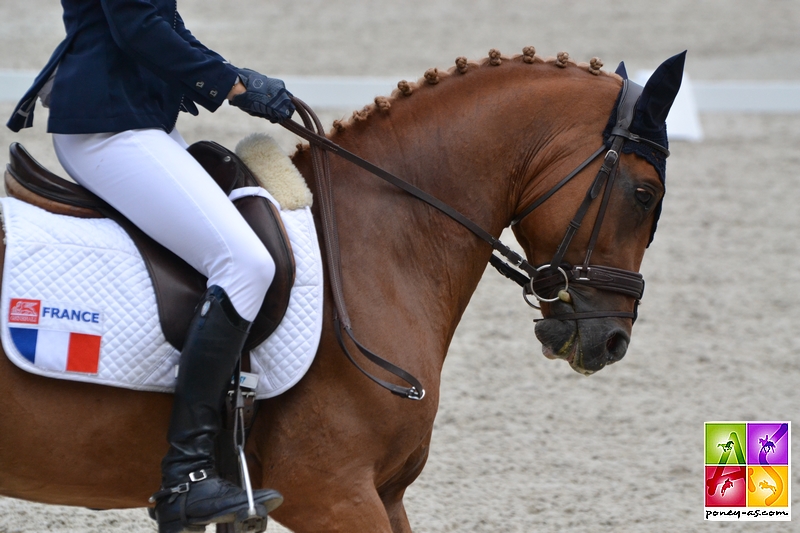 Alban Moullière en selle sur Olympe des Bois a été le premier à s’élancer. Le couple a montré une certaine prestance et est allé chercher les points : -47.50. Reprise propre, sans bavure, avec des notes au pas qui ont fait baisser la moyenne, mais sans surprise, on sait que cet allure est la moins brillante. « Des juges lui ont adresser un 4,5 à cette allure, c’est toutefois un peu sévère », analysait le chef d’équipe Emmanuel Quittet.