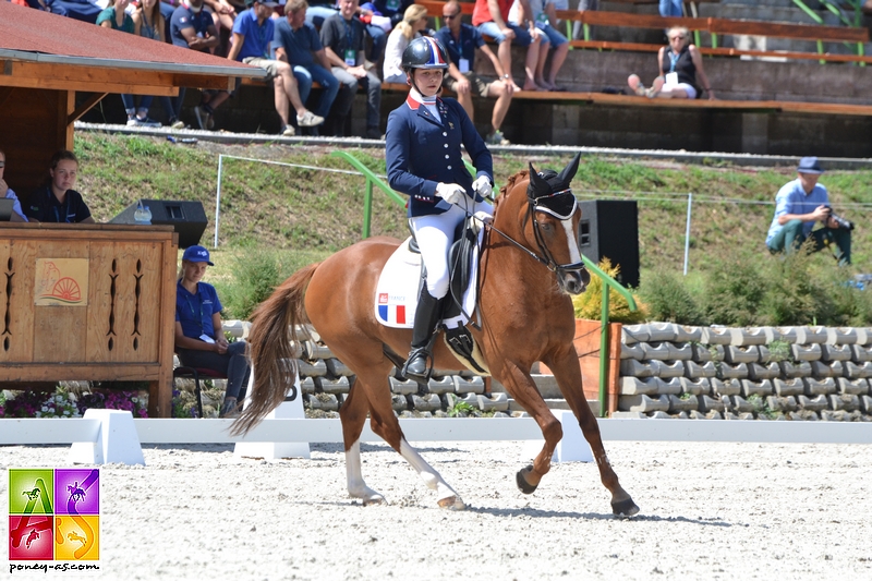 Le classement final reposait sur les épaules de Charlotte et Under Cover. Après un paddock où tout s’est passé pour le mieux, le couple s’est heurté à un premier départ involontaire au galop dans le travail au trot, puis par un autre. Entre temps le charismatique étalon noir a quelque peu tenté d’arracher les rênes de sa cavalière. Le verdict fut sans appel pour nos champions de France : 64,897%.
