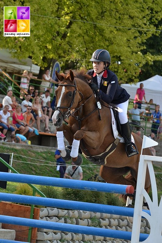 Coté français, outre les 4 points de Léo-Pol, Valentine Delaveau (Si Jolly des Ifs), auteure d’un magnifique parcours a bousculé le dernier, Charlotte Lebas (Quabar des Monceaux), sans-faute, se faisait avoir par le chrono, Jade Fleur Calaque (Ghost Rider) bouclait un somptueux clear round, et Camille Favrot, après une barre, a essuyé un stop sur le double n°5, avant de mettre un pied dans la rivière ( 16 points).