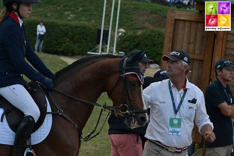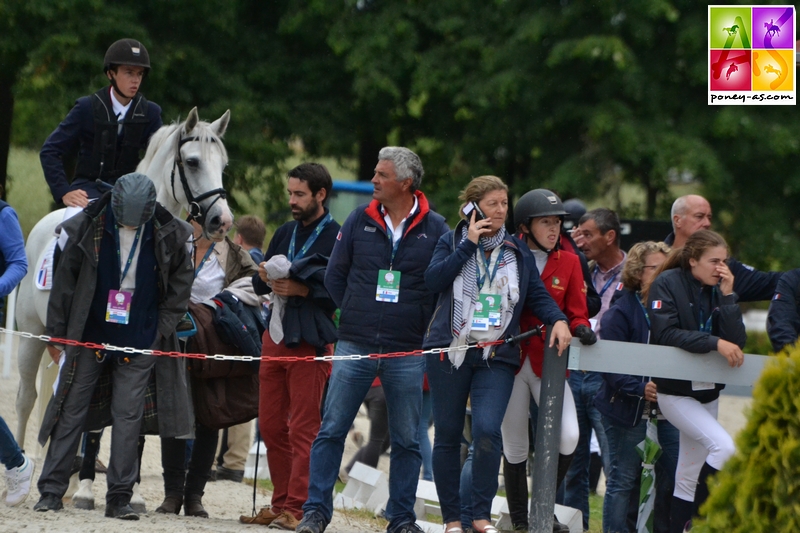OB : Jade a fait une excellente finale, Ghost Rider a très bien sauté, j’étais très content pour elle. Elle est bien rentrée dans ses championnat et a très bien endossé son rôle d’individuelle. Elle a déroulé ses parcours tranquillement et à son rythme. Un tout petit peu de pression le premier jour lui a valu une barre et 1 point de temps, mais elle passait première, ce n’est pas simple, puis elle est rentrée dans son championnat en toute confiance avec son entraineur Eric Muhr. Charlotte et Quabar des Monceaux ont réalisé de bons parcours et ne commettent pas de fautes dans la finale. Le poney a très bien sauté dans la finale tout comme dans la Coupe, même si on a eu un souci de guêtre sur le premier tour. Valentine a fait un bon championnat pour sa première grosse échéance. Ces 5 parcours étaient bien, malheureusement elle fait 4 petits points sur chaque (hormis la première manche qualificative où tous les français sont sans-faute, ndlr). Elle a pris une bonne expérience. Léo-pol, double sans-faute avant la finale, est parti avec plus de pression. Son poney Shamrock du Gite s’est décalé à gauche dans la première manche, comme il peut le faire parfois. Dans la seconde manche, on lui a fait prendre les options (le temps était serré, ndlr), il était bien dans le chrono. Après je dirais que le couple aurait du « baisser la pression ». Dans le feu de l’action, à l’intérieur de sa courbe, il faute sur la palanque naturelle. La deuxième faute est la conséquence de la première. Je suis fier de lui : il est 4e du championnat de France As Excellence, gagne le Critérium Junior, il tient son rôle dans la Coupe des nations de Kaposvàr. Camille, qui manquait un tout petit peu d’expérience, a fait une super saison avec Uhélem de Seille. Dans la première manche de la Coupe des nations, elle se fait voler le virage d’où sa faute sur la rivière et rectifie le tir sur son deuxième parcours. Dans la finale, elle remet une foulée sur l’oxer marron pour arriver sur la ligne du bidet et son poney s’arrête, c’est dommage car elle se ressaisie dans la deuxième manche.