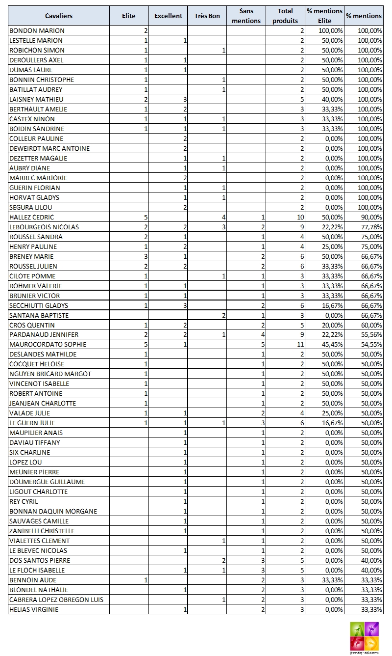 Récapitulatif des mentions par catégorie d’âges – finales SHF de CSO