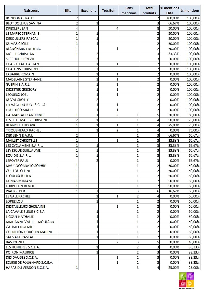 Naisseurs ayant au moins 2 produits finalistes (au moins une mention) – finales SHF de CSO