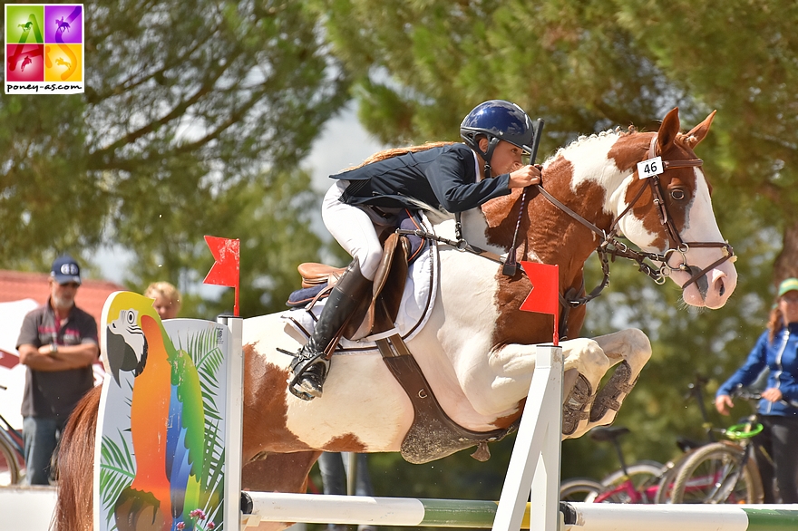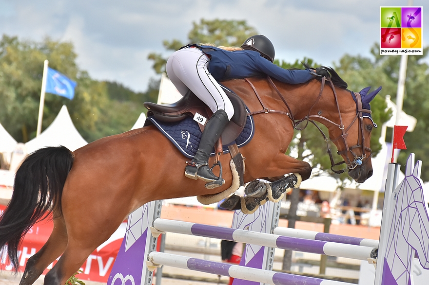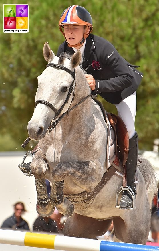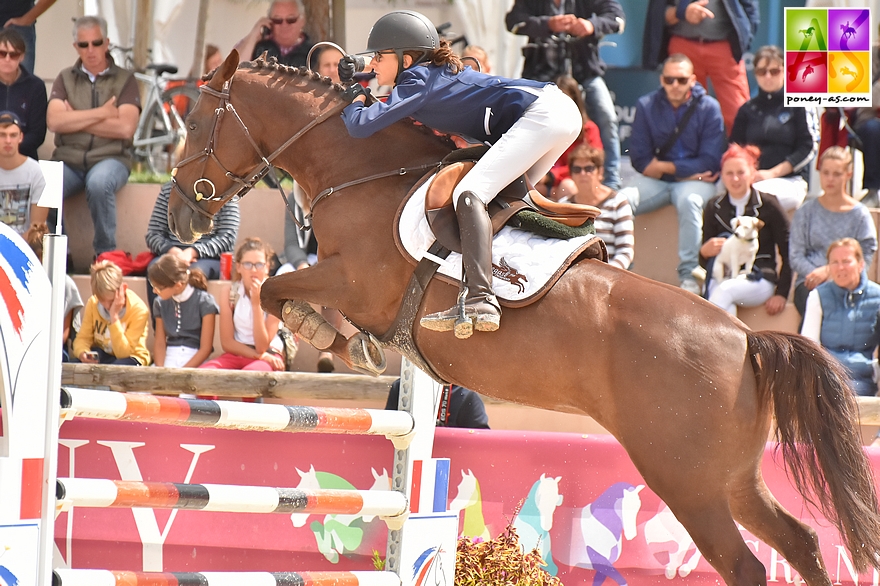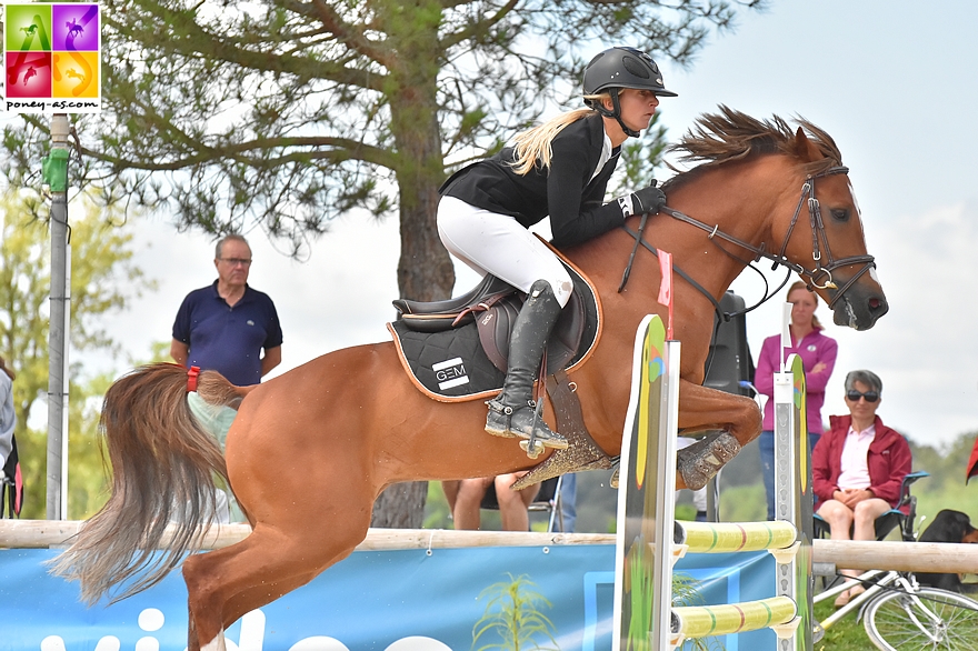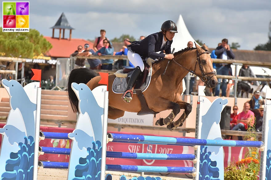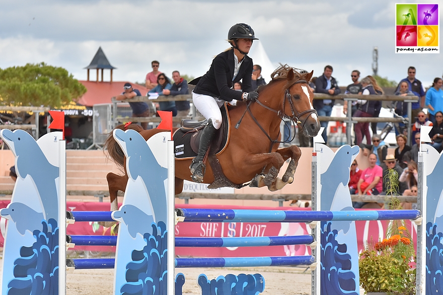 Un autre produit d’Aron N SL est dans le haut de ce tableau 2017 : Aragon des Landes est 5e, monté par Pauline Henry qui le connait par cœur. Né chez Pierre Hardel (50), ce mâle assez fin est le premier des 4 points (une faute dans la première manche). Lui aussi en est à sa quatrième finale de CSO au Sologn’Pony : Très Bon à 4 ans, Elite à 5, il se classait l’an passé Excellent à 6 ans (IPO 140/16). Sa mère, Jasmine des Landes (par Indra Rebel, Co) est une fille d’Alouette du Bocage, la mère de Nayade des Landes (IPO 166/14). Il s’agit de la souche de la Welsh B Revel Truffle que l’on retrouve notamment dans le pedigree des poneys « Elvey », « d’Audes » et bien sûr « du Bocage ».