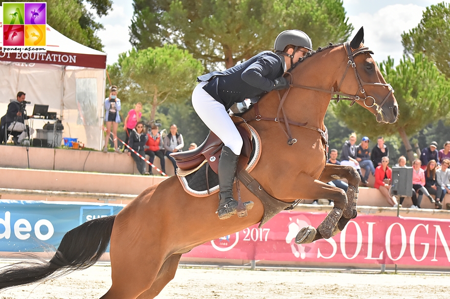 Un autre produit d’Aron N SL est dans le haut de ce tableau 2017 : Aragon des Landes est 5e, monté par Pauline Henry qui le connait par cœur. Né chez Pierre Hardel (50), ce mâle assez fin est le premier des 4 points (une faute dans la première manche). Lui aussi en est à sa quatrième finale de CSO au Sologn’Pony : Très Bon à 4 ans, Elite à 5, il se classait l’an passé Excellent à 6 ans (IPO 140/16). Sa mère, Jasmine des Landes (par Indra Rebel, Co) est une fille d’Alouette du Bocage, la mère de Nayade des Landes (IPO 166/14). Il s’agit de la souche de la Welsh B Revel Truffle que l’on retrouve notamment dans le pedigree des poneys « Elvey », « d’Audes » et bien sûr « du Bocage ».