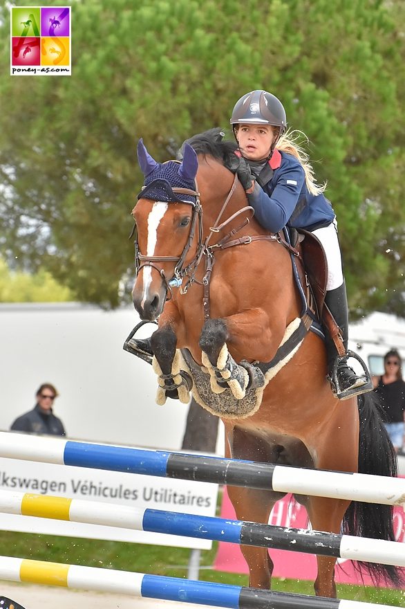 De la 5e à la 8e place : Aragon des Landes avec Pauline Henry ; la toute bonne Armene du Costilg (championne des 6 ans D) associée à la jeune cavalière de 13 ans Sixtine Morvillers que nous devrions revoir sur de belles épreuves, le très bon étalon New-Forest Lovelyhill Magical Height doté de force et d’un superbe geste, superbement bien monté par Ninon Castex (qui se montre maitre d’école sous la selle désormais de la toute jeune Margaux Bourguignon) et l’excellente Azur de la Hague (5 points sur la première manche), grosse pointure que l’on devrait voir évoluer elle aussi en Grand Prix sous les commandes de Lilou Burnouf.