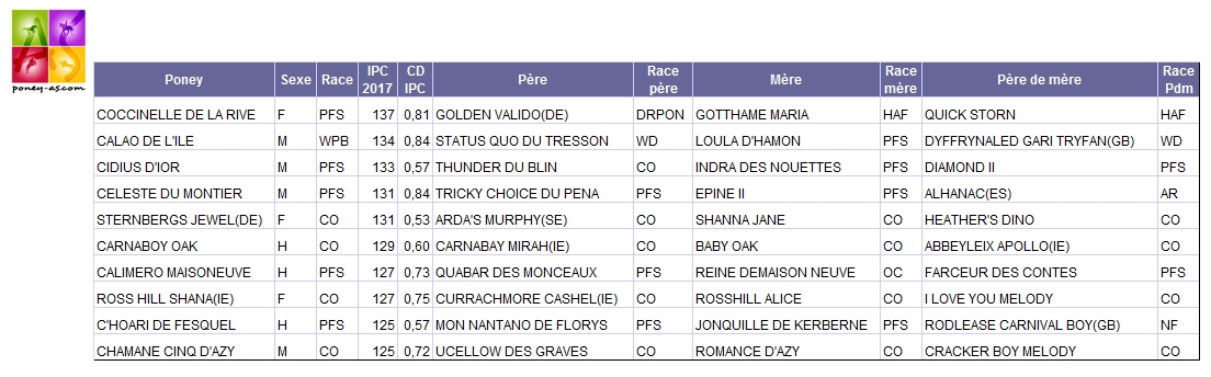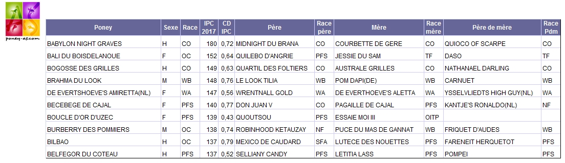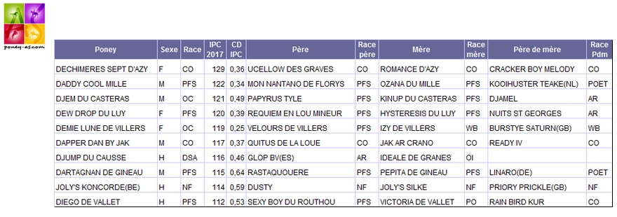 A noter que le champion des 4 ans de CCE, Djem du Casteras, détient un IPC de 121 cette année : il est troisième de ce classement.