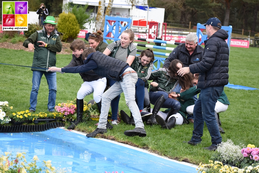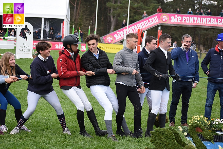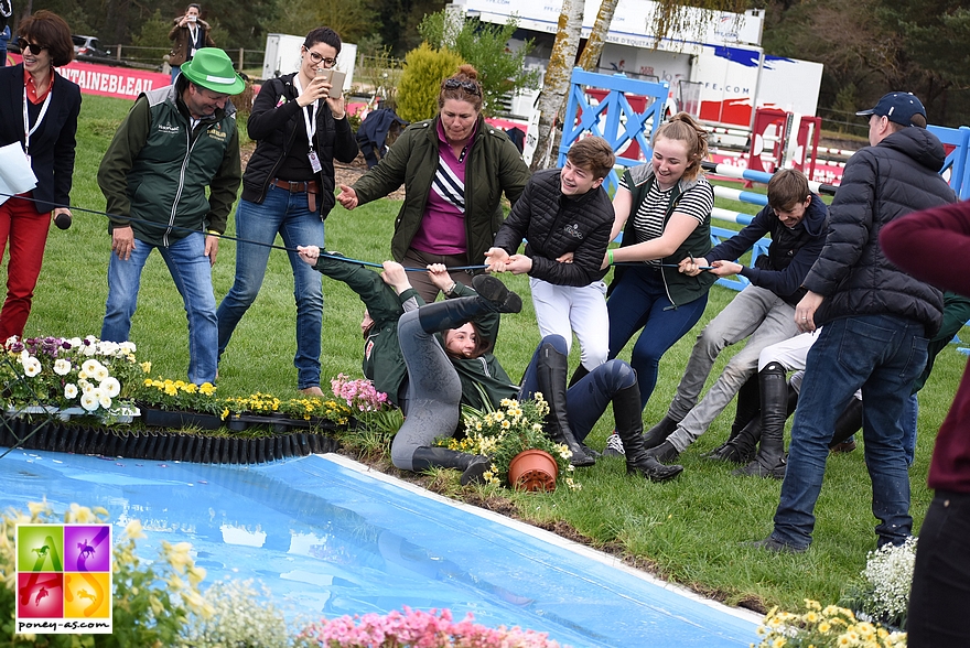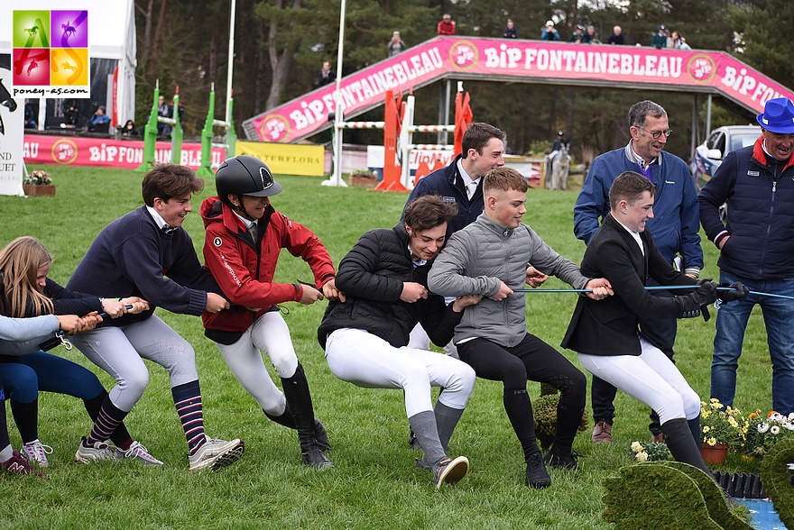 Sept cavaliers français et irlandais se sont affrontés hier après-midi dans la Battle Poney As du Bonneau International Poney 2018 ! Au programme, le tir à la corde a mis tout le monde d’accord puisque les trois manches ont été remportées par les Frenchies ! Bravo à Alice Lainé, Colombine Dupille, Tony Aquino, Maxime Joubert, Léo Allard, Yael Ezzahir et Mathéo Clausen et leur « conseiller stratégique » Dylan Ringot !