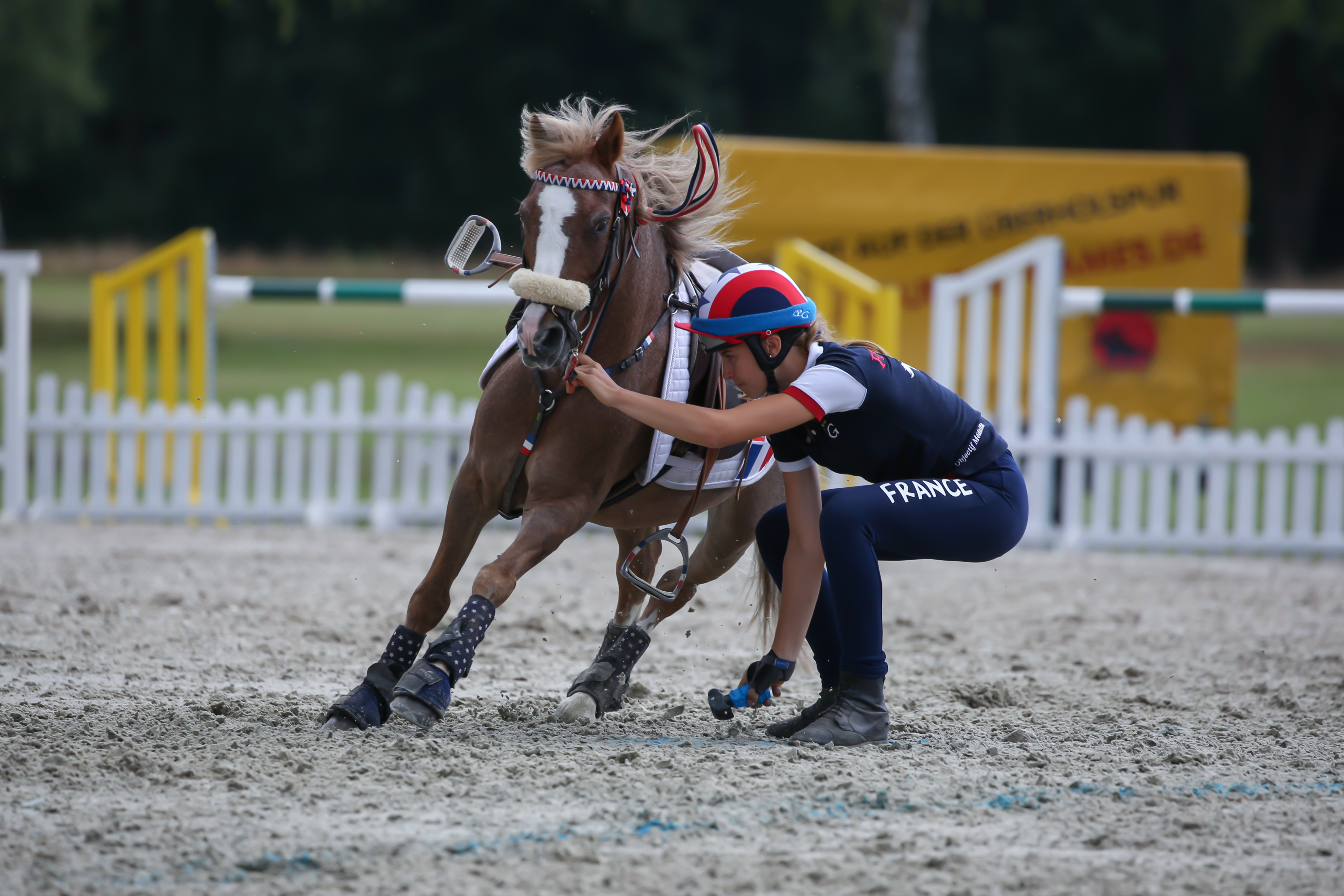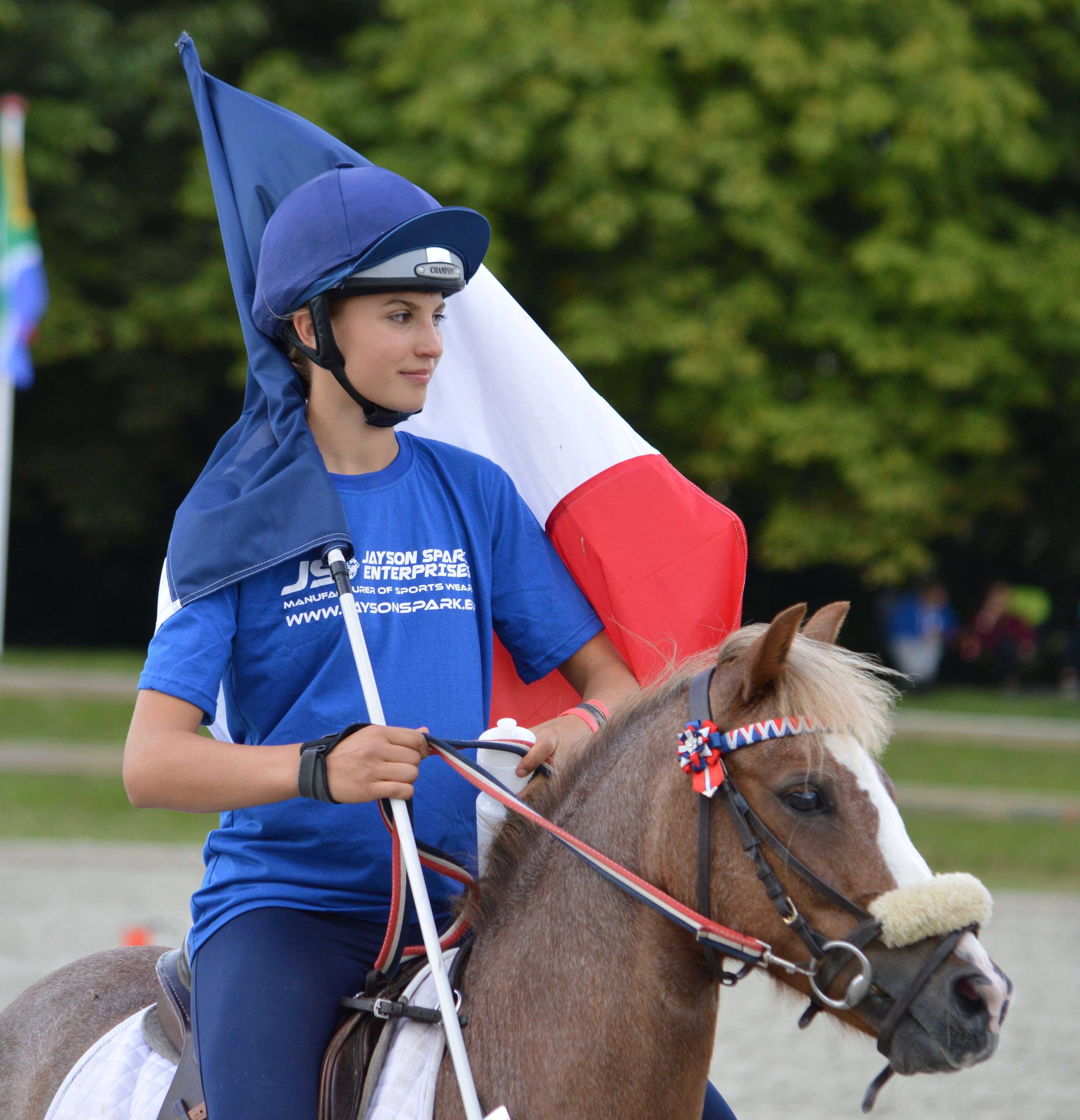 Le deuxième moment le plus incroyable que j’ai vécu date des championnats d’Europe en équipe à Dublin en Irlande en 2013 avec mon Shetland Pegase (mon premier poney de PG), puisque j’y ai remporté ma première médaille européenne. Ce championnat était aussi pour moi, l’année de découvertes incroyables ! En effet le site était extraordinaire, le terrain était super et c’est sans parler de l’ambiance. Mes yeux étaient remplis d’étoiles, j’étais tellement émerveillée par ce monde que je découvrais que je n’avais aucune appréhension. C’est le championnat qui a tout déclenché, ma grande passion pour le PG et ma mise en place dans le haut niveau. En l’espace de quelques mois, je suis passée de cavalière de club qui connaissait presque rien au PG à médaillée européenne et ce fut incroyable !