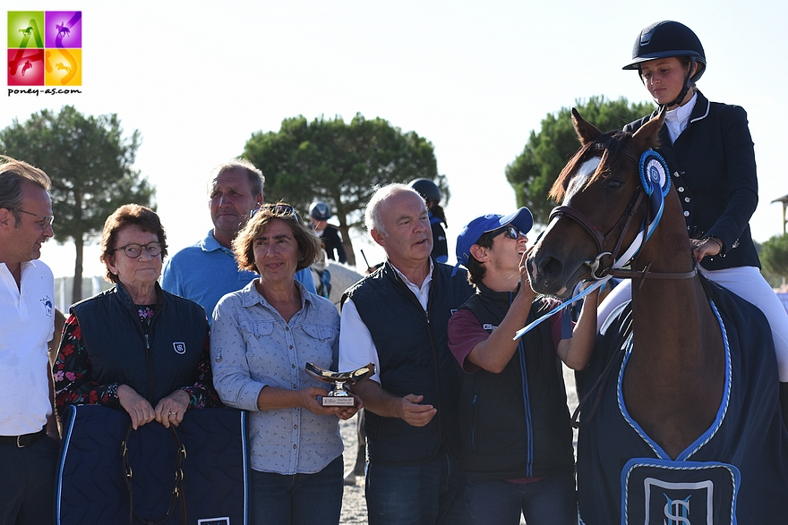 Partie avec le dernier numéro de cette finale des 5 ans D, la ravissante Doomy Star Porteron (Pfs, par Movie Star Tilia et Gosdamour Porteron, Sf par Rivage du Poncel), en tête déjà hier, a réédité un sans-faute synonyme de victoire sous la selle de sa naisseuse et cavalière Gladys Secchiutti ! « Cette bonne ponette, Excellent à 4 ans, était déjà passée tout proche de la mention Elite. Elle est notamment la propre sœur d’Afinity Star, Elite à 5 ans et de Beauty Star, Excellent à 4 et 6 ans et Elite 5 ans. Sa mère était la jument de mon frère avec qui il est sorti sur 1,40 m. C’est une famille de gagnants ! », lançait Gladys à la remise des prix. Deuxième de cette finale, une ponette qui montre un fort potentiel : Duchesse de Lalande (Pfs, par Taaron des Charmes et Jorane III par Caprice de Laselle), née chez Séverine et Ludovic Burnouf, appartenant à Elisabeth Baele et montée par son fils Nicolas. Ce dernier confiait « avoir une excellente jument. Je l’adore ! Nous l’avons achetée au début de ses 4 ans et je vais continuer à la monter à 6 et 7 ans. Après nous verrons… Duchesse est une princesse, c’est le genre de poney qui ne laisse pas indifférent ». Prennent la 3e place ex aequo : Angelo der Lenn (Pfs, Usandro Tilia Derlenn et Un Ange Passe au Péna par Dexter Leam Pondi), né à la EARL Der Lenn et monté par Lisa Vizor, et Delight de Meroise (Pfs, par Glenn SL et Alouette des Buis par Kantje’s Admiraal) pilotée par son naisseur Julien Roussel. Au final, 13 sujets ont reçu la mention convoitée « Elite ».