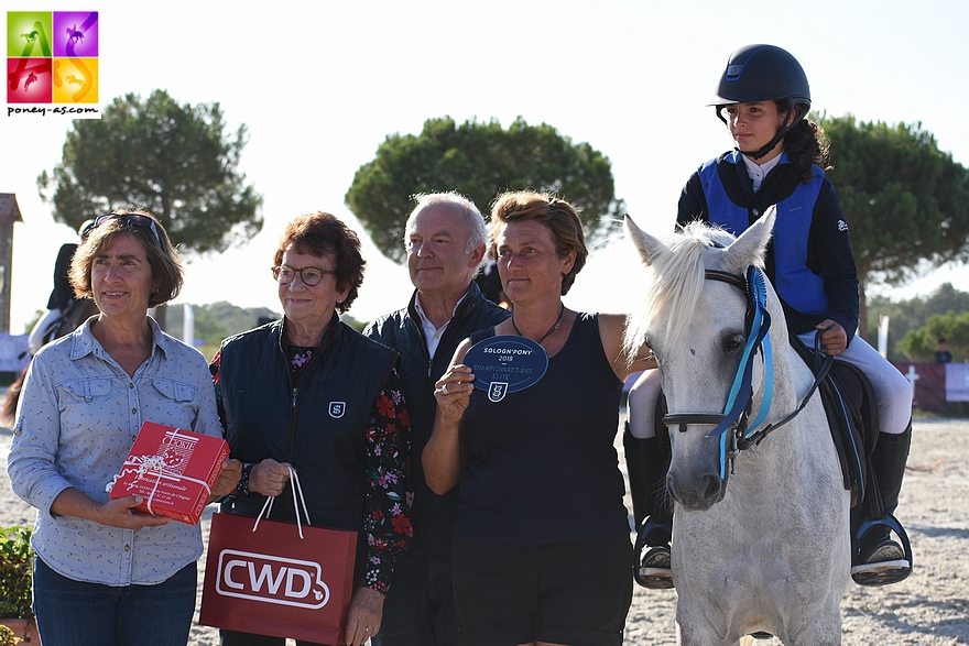 Dakota de Samson (Pfs, par Gavroche, Onc et Viva de la Duche par Quabar des Monceaux), née chez Olivier Moser (76), appartenant au Haras d’Artezieux et montée par la cavalière d’As Elite Elise Gueffier, en tête depuis le début de la compétition, a maintenu son leadership et s’octroie le titre de championne de France (14,5 en dressage, 15,5 en style et 3 points de bonification pour un 100% de sans-faute cette saison). Cette ponette est sortie à 4 ans en Cycle Libre première année (5 premières places sur 5) et est détentrice d’un IPO de 138 en 2017. Elle est l’unique produit de sa mère Viva de la Duche. « L’acquisition de cette ponette a été effectué pour développer notre élevage de Pfs dans l’Isere (38) et ses résultats très encourageants nous rendent impatient de découvrir ses futurs produits. Le choix sur cette jeune ponette a été motivé par son caractère appliquée, volontaire et réfléchi à l’obstacle. Très polyvalente, ces résultats lors des qualifications avec 3 cavaliers différents montrent la qualité de son sens de l’obstacle dans la lignée de Quabar des Monceaux et Tonnerre d’Angrie », explique Xavier Gueffier.