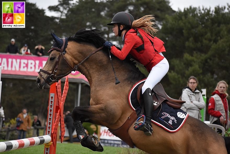 CS : Oui, c’est vraiment un poney à l’écoute, il avait envie de bien faire ! Sur le championnat As Poney 2, nous faisons un quadruple sans-faute. Il n’a pas forcé, c’était plutôt facile pour lui ! Lors de la finale, il s’est montré très joueur, le barrage lui a plu ! Pour la finale des 7 ans, c’était la première fois que nous sautions aussi gros (1,25 m), j’avais juste fais avant une 1,20 m qui s’était très bien passée. Il était top. Le premier jour, il n’était pas hésitant, mais un petit peu derrière moi et nous faisons une barre. Le second jour, il fait un superbe sans-faute. Dans la finale, il met un pied dans la rivière un peu de ma faute, d’où mes 4 points. Il était magique !