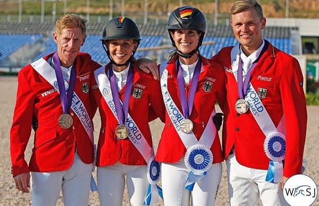 De gauche à droite, Marcus Ehning, Laura Klaphake, Simone Blum et Maurice Tebbel, médaillés de bronze à Tryon – ph. coll.