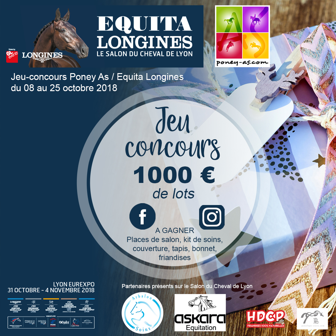 Vous avez été très nombreux à participer à notre jeu-concours pour tenter de gagner des places pour le Salon Equita Longines de Lyon et de très chouettes cadeaux de nos partenaires La BOUTIQUE DE L’ARBALOU, ASKARA, PENELOPE STORE et HDCP.