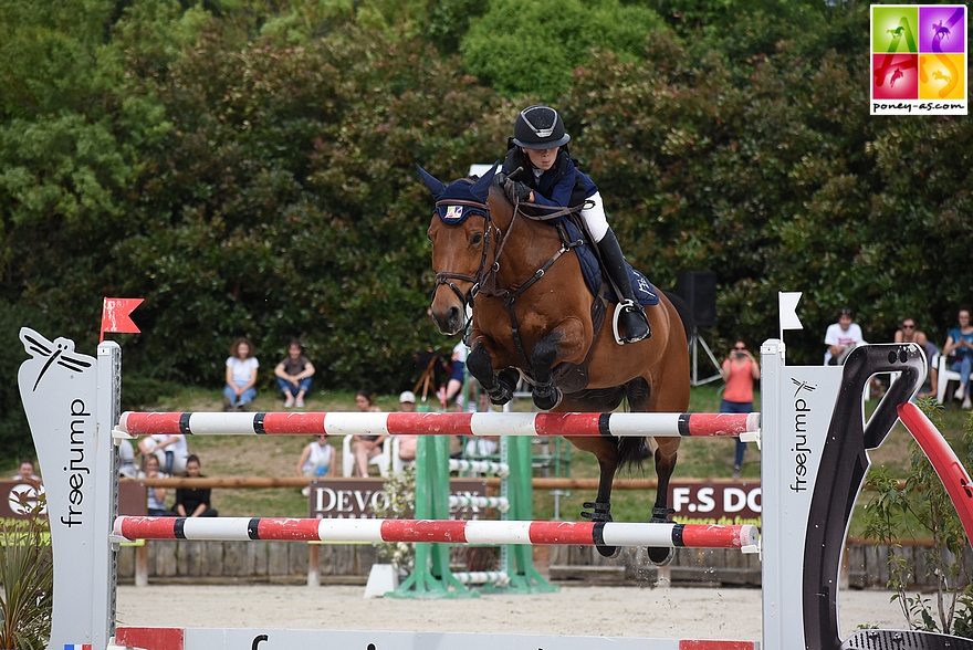 En 2015, associée déjà à Tutti Quanti Joyeuse*du Mystère, ponette appartenant à Lucie Proust Lelong, elle remporte la médaille d’or du championnat de France des As Enfants à Macon.