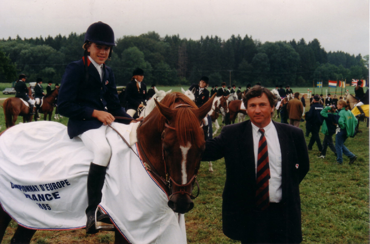 Le couple phare français des années 1994, 1995 et 1996 : Simon et Panama du Cassou aux côtés de l’entraineur national Francis Rebel. Ici à Lamotte-Beuvron en 1995 – ph. Guillaume Levesque