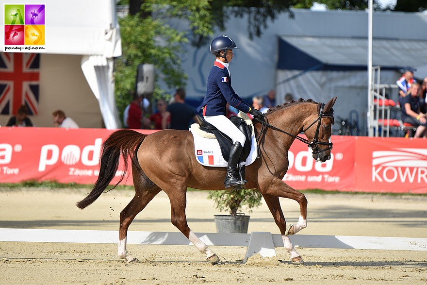 Quant aux français, les résultats sont en demi-teinte. Passée dans les premiers et comptant pour l’équipe, Lilou Ducastaing a dû composer avec l’attitude de Winnetou. En entrant dans la carrière, le poney s’est tendu face à la caméra (absente lors de la familiarisation) et l’est resté tout au long de la reprise, au détriment de l’attitude et de la propreté d’ensemble. Le couple récolte un score de -37,5, soit une seizième place provisoire.