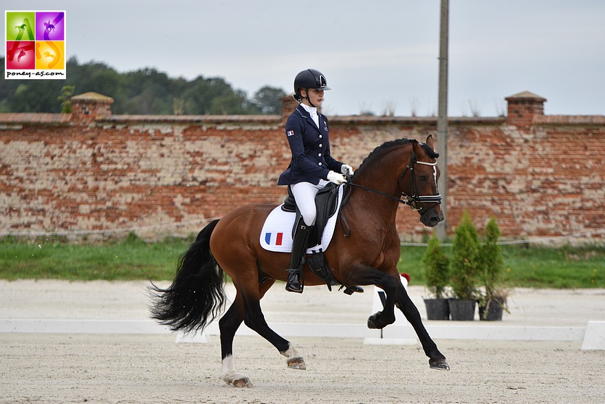 Passée en deuxième, notre Française Enora de Vienne avait pour objectif de se faire plaisir, pour son dernier tour de piste en catégorie poney. Contrat rempli ! Sa RLM fut une nouvelle fois superbe, même si Swyn Barrade commençait à encaisser la fatigue des jours précédents. La reprise manquait de temps en temps de brillant. Néanmoins, l’émotion est restée intacte et notre championne de France termine son championnat sur une très belle note : 71,610% ! Cela leur permet d’accrocher une très honorable 15e place.