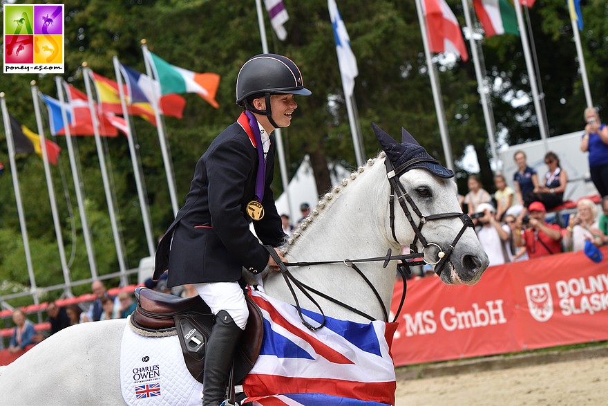 Quel final passionnant ! Tous les poneys ayant été acceptés à la visite vétérinaire, les 32 complétistes restant se sont affrontés ce matin sur un parcours d’hippique délicat. Les Britanniques ont régné en maîtres sur cette édition : ils décrochent l’or par équipe, ainsi que l’or individuel grâce à Finn Healy et Midnight Dancer.