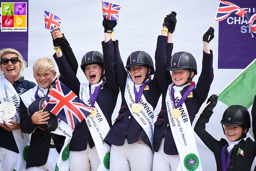 L’équipe d’Angleterre a en effet été impériale. En tête depuis le premier jour de compétition, elle s’impose largement aujourd’hui avec un total de 101.8 points. Après un bon dressage, un cross « maxi » et grâce à un parcours d’hippique conclu avec seulement un peu de temps, Finn Healy obtient le titre européen à l’aide de sa bonne grisette Midnight Dancer (31,7 points). Il est accompagné sur la deuxième marche du podium par sa compatriote Ibble Watson (Bookhamlodge Pennylane), l’une des 4 sans-faute de ce parcours d’obstacles. Seule la troisième marche du podium échappe aux Britanniques : l’italienne Camilla Luciani, associée à Camelot Damgaard, termine avec le bronze autour du coup. Freya Partridge, elle aussi Britannique, termine au pied du podium. Daisy Bathe, en tête ce matin, essuie malheureusement un refus sur l’entrée du double, puis bouscule le dernier avec SF Detroit : ce sera finalement la 7e place.