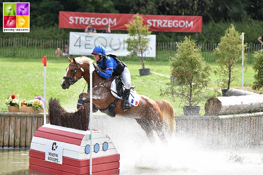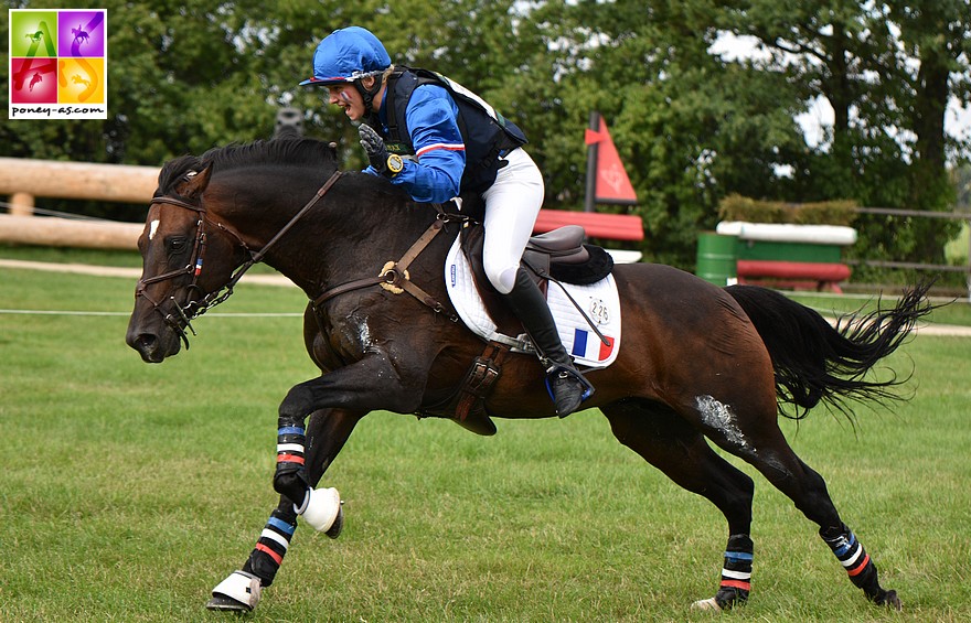Du côté de nos cavaliers individuels, Chloé Gualtieri, pour son premier championnat d’Europe, réalise le seul parcours « maxi » du clan Français ! Avec son très bon Virtuose Teakitina, elle réalise un sublime  parcours qui lui permet de remonter à la huitième place individuelle (4,1 points de la tête). En revanche, ce fut un peu plus compliqué pour Manon Marin et Urgence de Bel Air. La jeune tricolore essuie un refus sur la sortie du premier gué, en plus de quelques points de temps (seulement 3,2 points malgré son refus !). Elle pointe donc ce soir à la 27e place.
