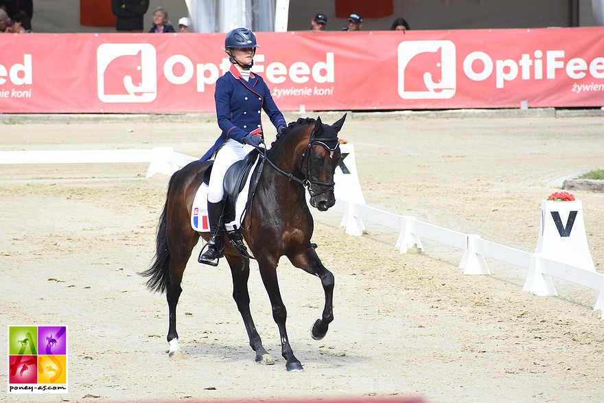 Peu avant, sa sœur a plus que bien fait pour ses premiers championnats d’Europe. Après une ligne d’entrée un peu compliquée, elle a su bien se rattraper et marquer des points sur les figures au galop notamment. Elle empoche un honorable -32.9 et une quinzième place provisoire.