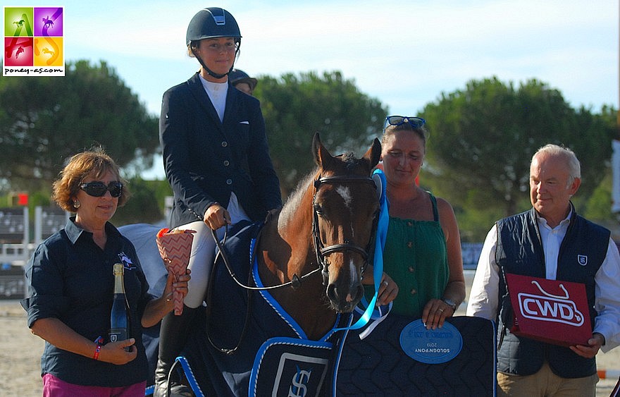 Elle a devancé 19 autres poneys Elite dont la bondissante Elme Destiny’s (Oc, Linaro SL, Drp x Quick Star, Sf) montée au pied levé par Aude Bennoin et sacrée vice-championne ainsi que trois poneys classés à la troisième place ex aequo : l’étalon Pfs Etadam d’Odival (Vito de Blonde x Welcome Sympatico SL, Han), champion des 4 ans l’an passé, sous la selle de Mathieu Laisney ; Electre d’Elb (Pfs, Linaro SL, Drp x Don Juan V, Co) montée par Marion Bondon et El Angel de Florys (Pfs, par le Connemara Idéfix du Villon SL et la ponette Allemande Angel, vice-championne d’Europe de CSO en indivdiuel)  présenté par Aurélie Larosa Mahé.