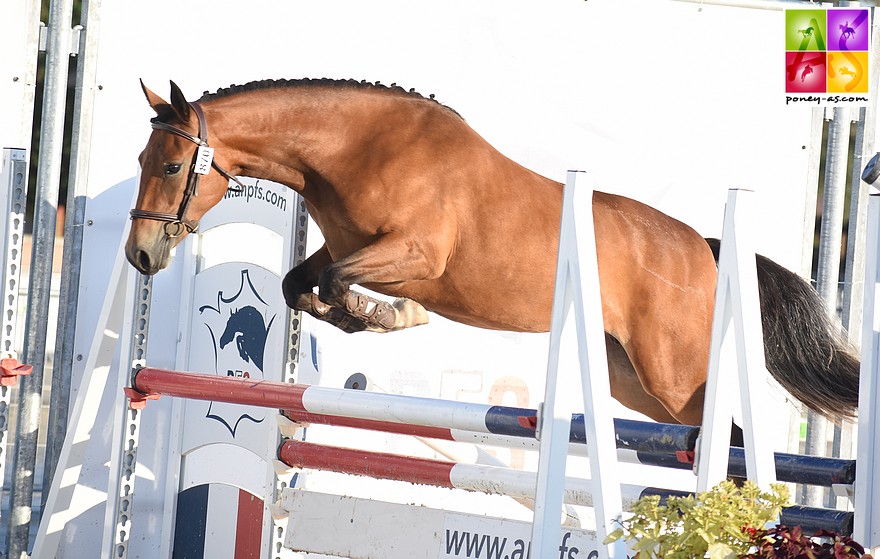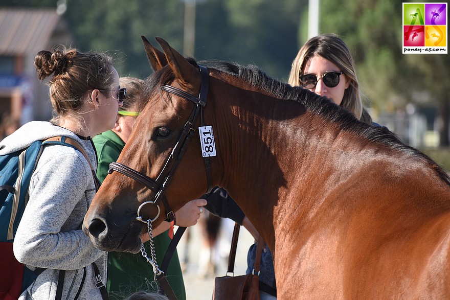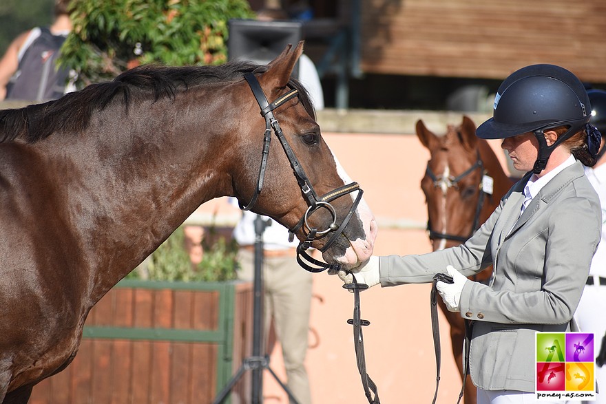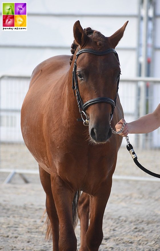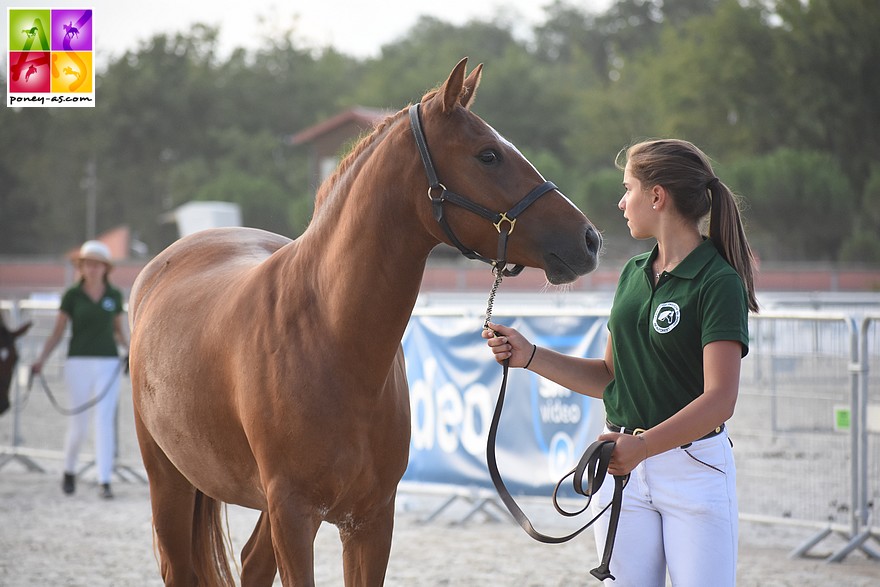 Gaga Lagesse est quant à elle une fille de Balentino de Treille (par Kantje’s Ronaldo SL), vainqueur notamment du Grand Prix des 7 ans au Bonneau International Poney et de Valse de Lagesse, issue du performer international en CSO Rambo SL. Cette ponette est née chez Paul-François Brunaud (10) et était présentée par sa petite-fille, la cavalière de Grand Prix Isaure Zeult, qui devrait la débuter en compétition l’an prochain. Gaga est le fruit de 5 générations sélectionnées. A la base de cette souche : la poulinière Quenelle V, fille du bon Cheriton Rett Butler et mère, entre autres, de l’étalon Kinesitepas (Elite en CCJP de CSO à 5 ans, puis 5e du Master des 6 ans de Fontainebleau à l’époque). Cette jolie femelle de 3 ans, au modèle sport, s’est extrêmement bien exprimée à l’atelier du saut. Les juges n’ont pas hésité à lui adjuger un 9/10. Avec 15,80 au modèle, 7,67/10 aux allures et 19 au comportement en main, l’alezane s’est imposée dans la classe des femelles de 3 ans avec 16,56 de moyenne devant la protégée de Lucile Chavane (32), Grace de Gascogne (Jasper x Anydale Ron SL). Celle dernière a obtenu les notes suivantes : 15,30/20 dont 8/10 aux allures et 7,50/10 à l’obstacle.