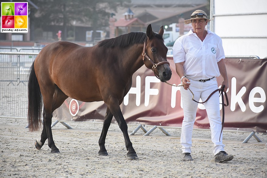 Né chez Norma Mallet (19) et présenté par Anne Remande, Hearbreaker O’Mallet avait préalablement remporté la classe des mâles de 2 ans et reçu une approbation provisoire. Il s’agit d’un fils du performer jusqu’en C1 Elite de CSO Silverlea Baywatch et de Kucaracha Verdo par Udou des Etangs. L’affixe des Etangs d’Hélène de Bonnafos, voilà un autre nom à retenir parmi les pionniers du stud-book ; tout comme l’ont été Hélène de Clermont (« de la Noue »), Jean Lassoux (« de Tyv »), Jean-Pierre Berthélemy du Bucq (« du Galion »), Claude Guerlain (importateur des étalons Cheriton Mr Fluff IV et Cheriton Rett Butler, des poulinières Staplecross Morning Glory et Foulford Jedda Of Rockfor, celle-ci étant devenue la mère de la célèbre matrone Fée, laquelle a donné à son tour les étalons Mario, Obelisque, Asterix II ou encore la poulinière Quouette, mère de l’étalon Illoway Cheriton Fast, performeur jusqu’en D1 Elite du haut de sa taille C, IPO 162), Monsieur Giraudon de Mazaubert… La souche d’Hearbreaker est celle de Priory Pollydora, une jument de l’élevage des Ifs de Joëlle et Sophie Boisnard, connue entre autres pour être la mère de plusieurs étalons dont Jolly des Ifs (l’élevage « des Ifs », précurseur lui aussi dans les années 60/70). Ce petit alezan a reçu les notes suivantes : 15,47 au modèle (avec un 9 pour le type dans la race), 7/10 aux allures, 7,88/10 à l’obstacle et 17/20 au comportement en main (score global de 15,31).