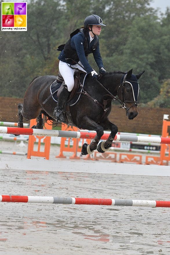 Derrière, nous retrouvons 3 couples pénalisés par une barre au sol. Parmi eux, Cannelle Paramucchio et Uhelem de Seille ont été les plus rapides et s’adjugent ainsi la troisième place, malgré une grosse faute sur l’oxer suivant la rivière. Lise Guarato et Irina del Ara terminent au pied du podium, également pénalisées par une barre dans le triple. Enfin, Marion Salomé, associée à son fidèle Amgoon de Bernières, réalisent un beau parcours entaché d’une barre dans le double ; c’est la cinquième place finale.